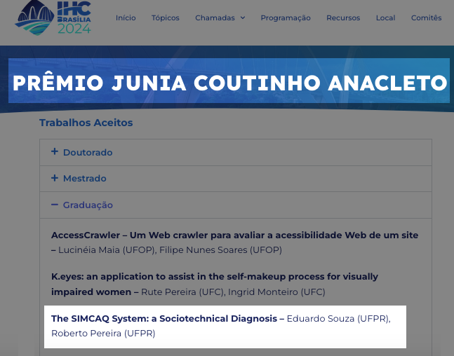 O artigo sobre a plataforma MECRED foi escolhido como Best Paper da trilha IHC na Prática, na XXIII edição do Simpósio …